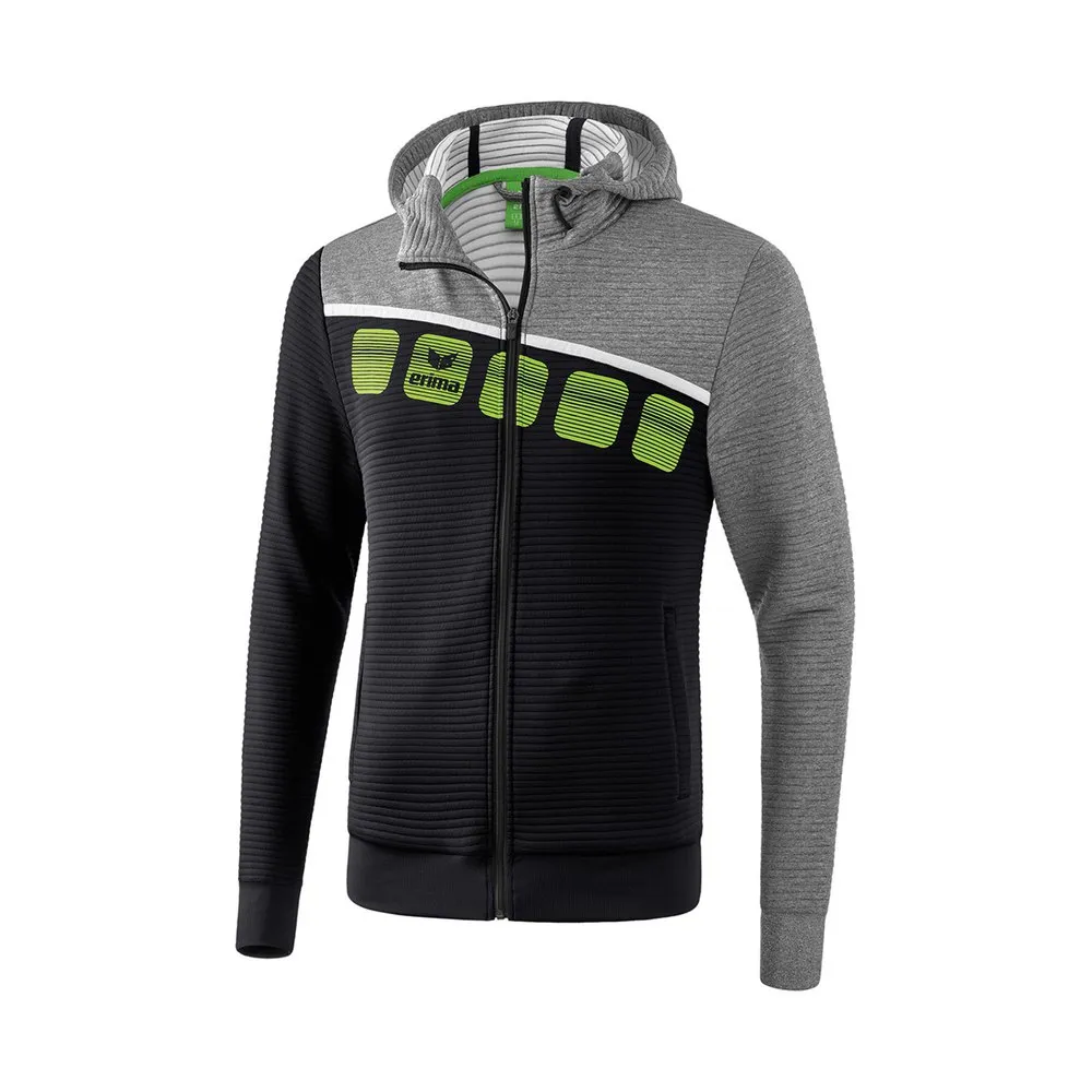 Casual hooded jacket with cotton feel. Functional fabric with soft touch Cotton touch for a comfortable feel High collar with integrated hood and drawstring Elasticated ribbed sleeves and hem for a comfortable fit Side zip pockets Stylish 5-C print in 3D look Children´s version without drawstring in the hood